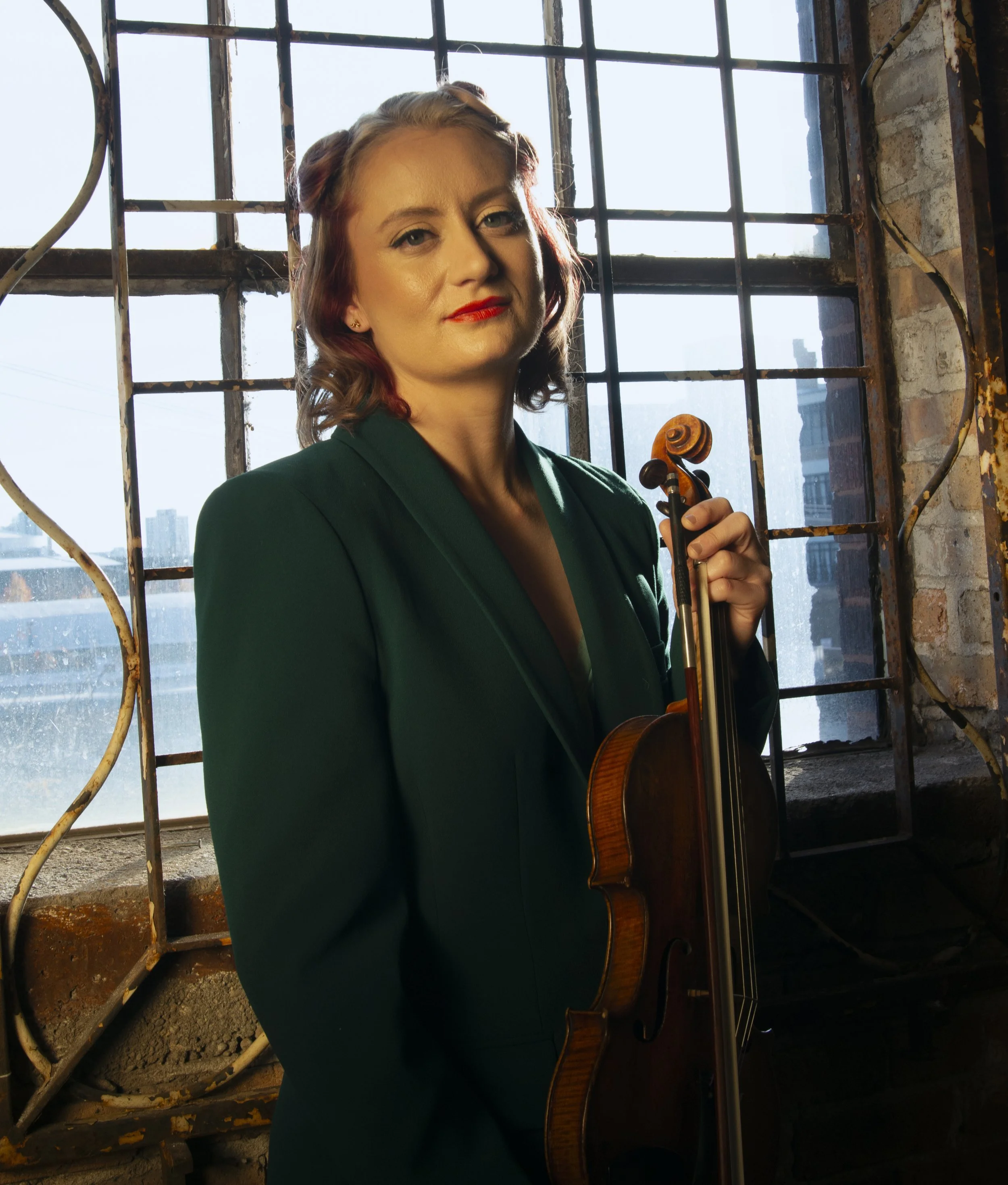 Embodying that question, the quartet came on stage, sat down, tuned and adjusted their music and stands and then waited, as music wafted from speakers along with simultaneous projections of rectangles with stain-glassed hues, befitting the hammer-beam ceiling of the Hall. They then sat still and silent until the composition directed them to add their in-person sounds. The sequence created a reverential mood, in which pizzicato/arco recorded sounds become enmeshed with the mostly bowed melodies of the in-person players, engaging the audience to consider musical heritage. The combined effect was electrically hypnotic.